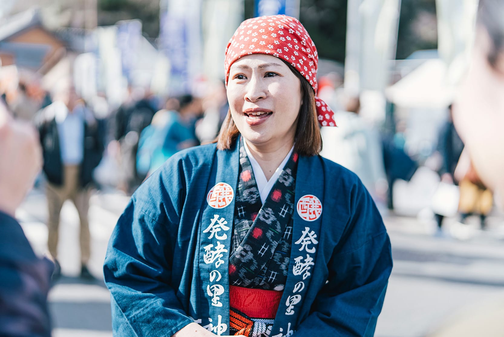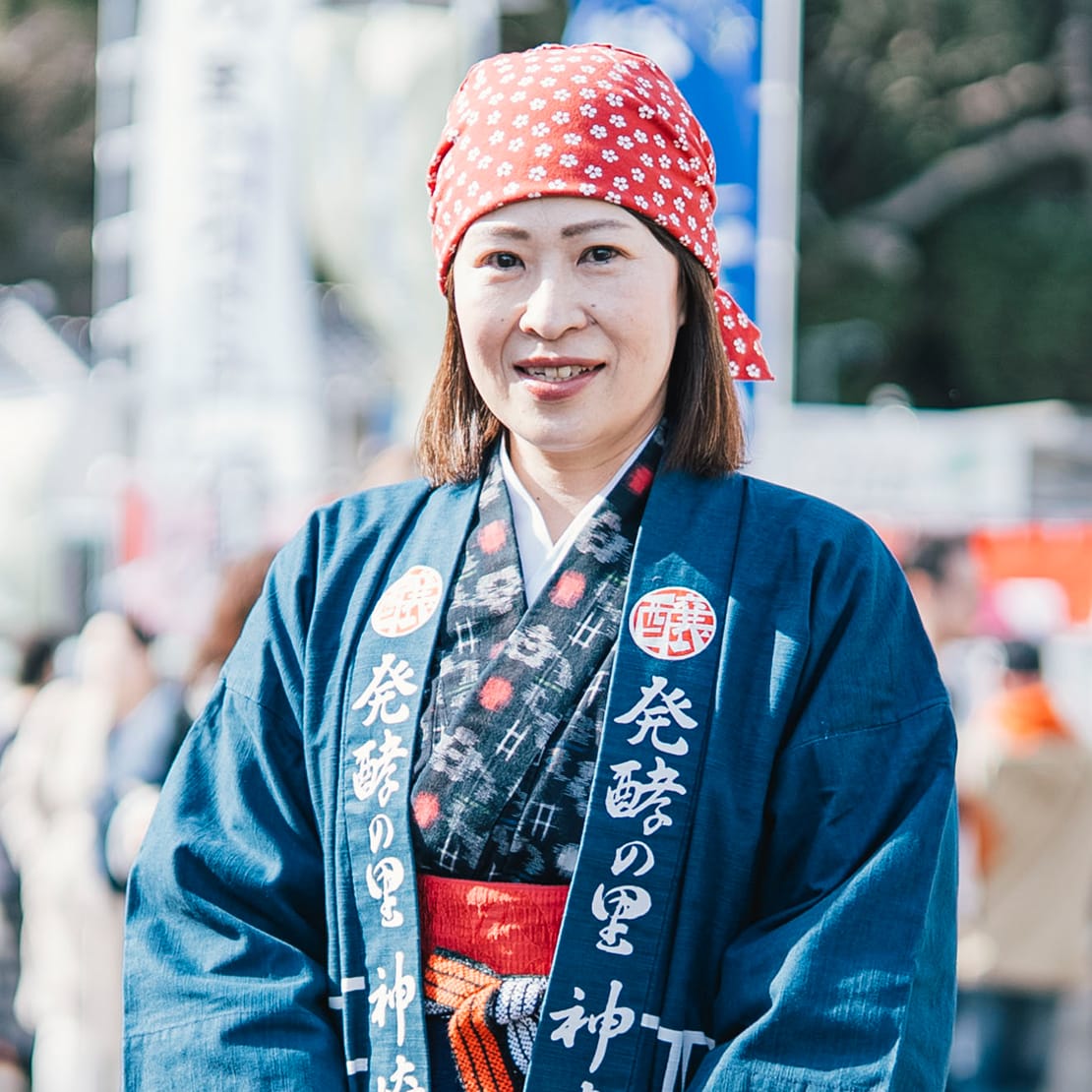 澤田さんは発酵のイベントに関わるとき、「お里さん」というニックネームを付けた、町娘のようなキャラクターに変身する。絣の着物に赤い手拭いを被ったコスプレ姿は、もうみんなにお馴染みのようで、道ゆく人からも親しげに声が掛かる。