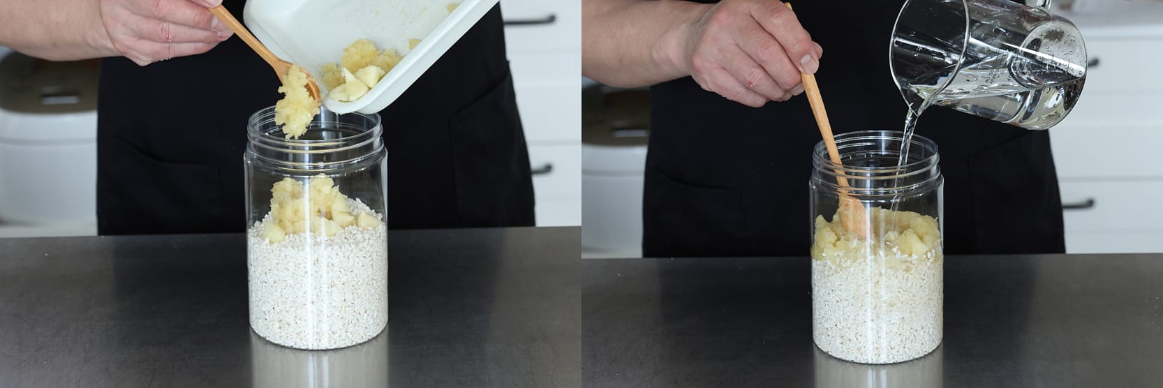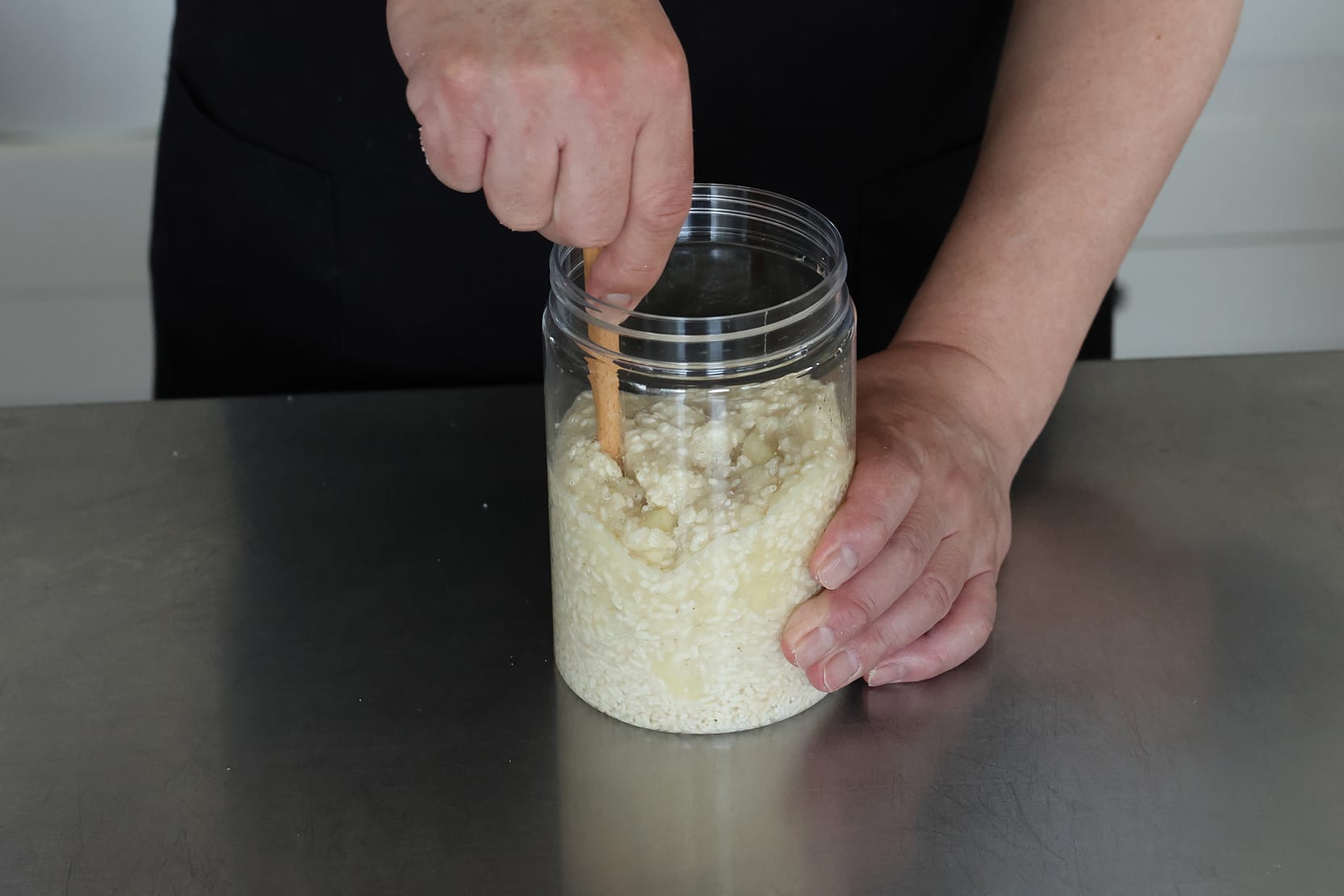 夏は1週間、冬は2週間を目安に麹が柔らかくなるまで発酵させて完成。その後は冷蔵庫で保存してください。