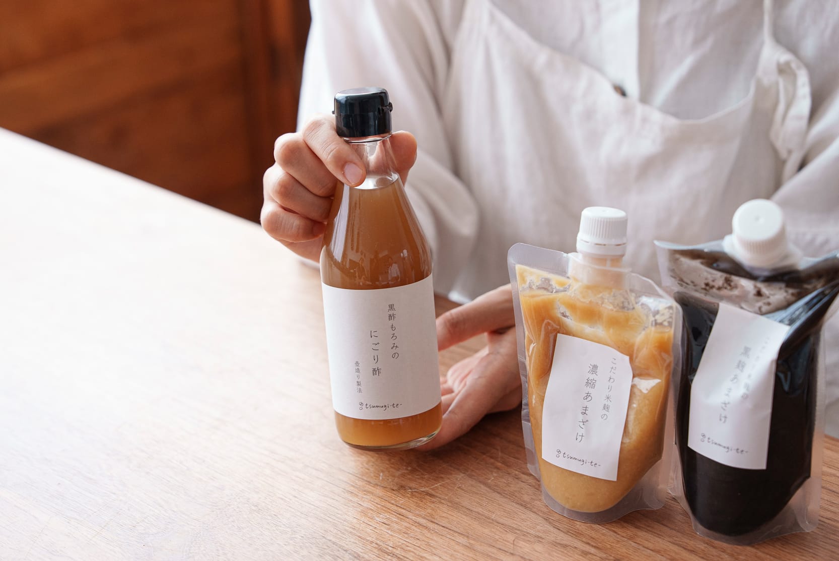 「醸造所などにお邪魔すると、発酵食品をつくる過程で捨てる部分があったりして、せっかくおいしくて体にいいものなのに、もったいないと思ったのが最初のきっかけです。一番初めに出した商品は『黒酢もろみのにごり酢』。お酢をつくるときに本来はろ過してしまうもろみも一緒に取り入れられたらいいなと思って。もろみの中には酢酸菌がたくさんいて、その美容や健康に関する効能は多くの研究結果が得られています。今ちょっとしたにごり酢ブームになっているくらい。あとは黒麹の甘酒など、一般にはあまり知られていない麹商品を見つけたら、その魅力も伝えていきたい。発酵好きで消費者寄りな、料理を仕事にする私がいいと思う商品をおすすめすることは、きっと意味があるんじゃないかなと思ってやっています」