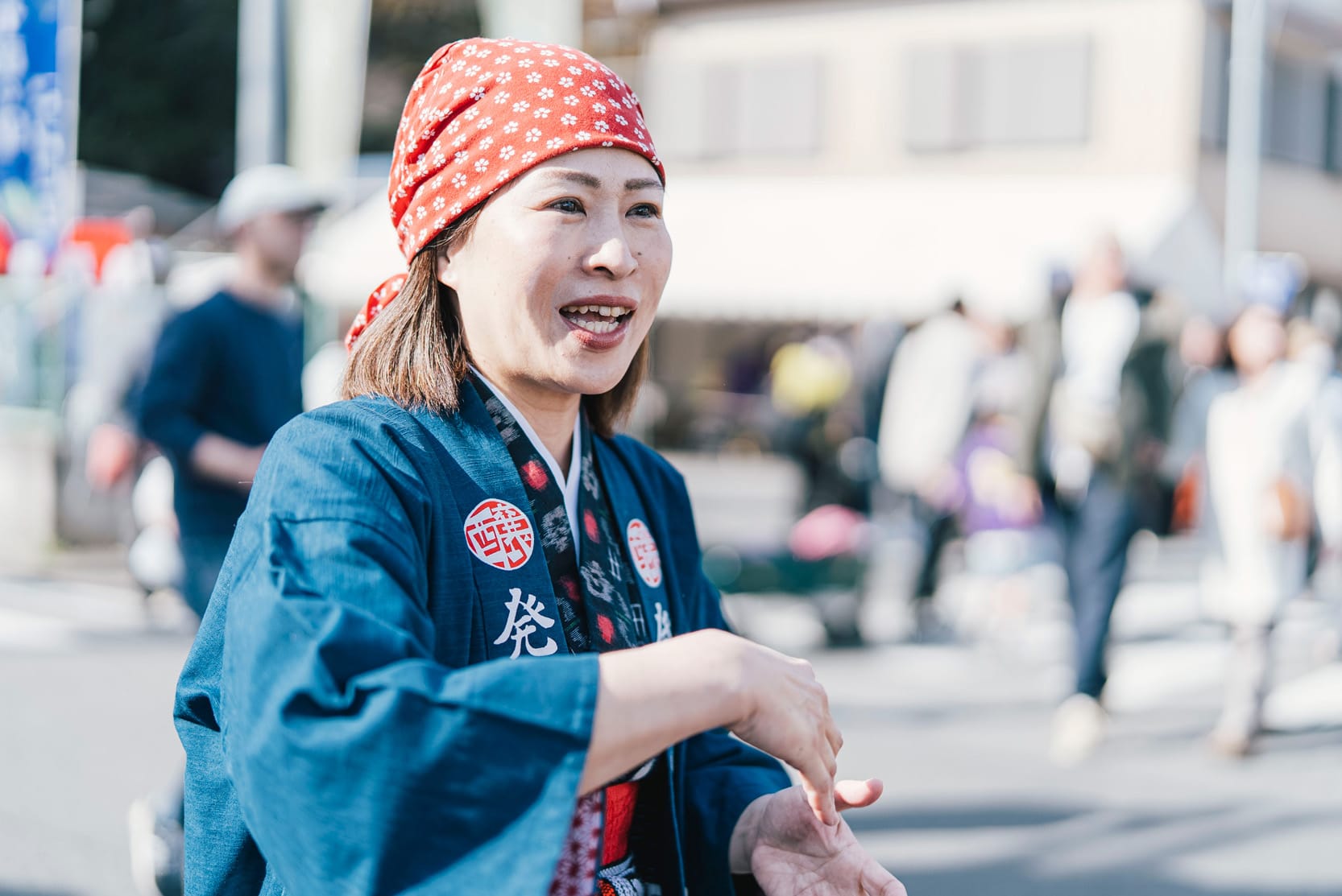 澤田さんは発酵のイベントに関わるとき、「お里さん」というニックネームを付けた、町娘のようなキャラクターに変身する。絣の着物に赤い手拭いを被ったコスプレ姿は、もうみんなにお馴染みのようで、道ゆく人からも親しげに声が掛かる。