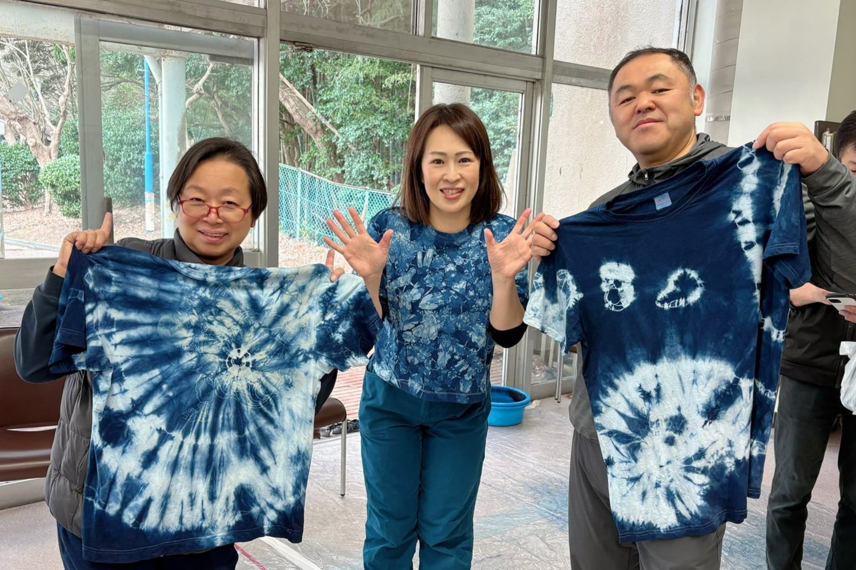 ひとつとして同じ柄のものがないオリジナルの藍染めTシャツをランナーにプレゼント(写真提供:澤田聡美)